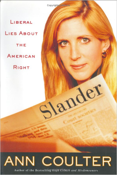 I’ll admit it: I actually read, once upon a time, Ann Coulter’s book Slander; Liberal Lies About the American Right. I had to swab my brain with Clorox afterward, but I did it. I had my reasons. And while Ann herself is no more worth discussing than any of the other vast horde of vitriolic pundits who have discovered that there are tremendous profits to be made in attacking “liberals”, this particular volume offers some fascinating illumination of that pursuit, and of certain propaganda tactics in general.