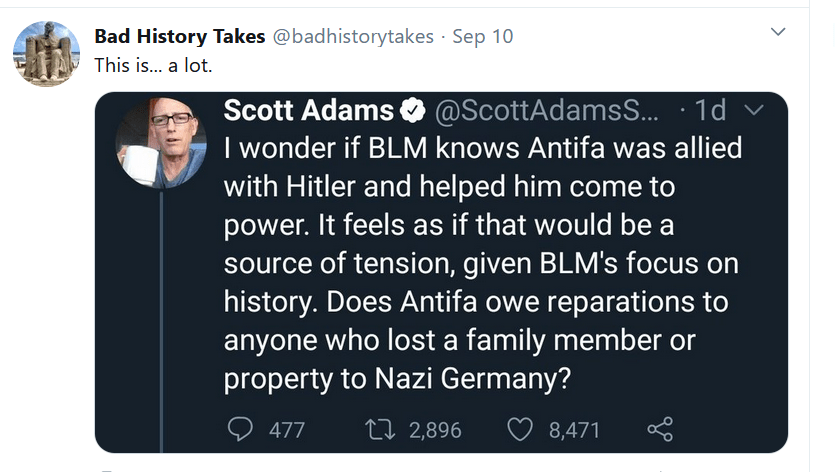 (Alas, I was such a Dilbert fan about 3 decades ago when it was actually funny, and before its creator went so deep off the deep end. And one of the sad awakenings of perusing Twitter is finding out what a deranged white nationalist he has become.)