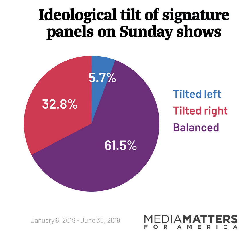 Here’s one study that tracks the ideological tilt of guests on Sunday cable news shows over a 6-month period, which is a sizeable and quite adequate sampling.