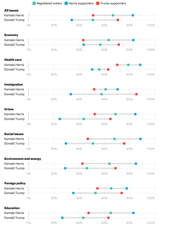 What’s more impressive, however, is that despite the relentless tsunami of misinformation an disinformation, voters still distinctly preferred Harris. Well, at least they preferred her platform, if they didn’t know it was hers.