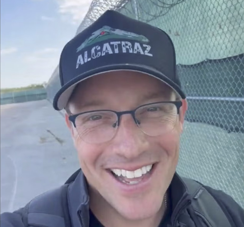 Meanwhile, the cosplay administration completed construction of a Florida concentration camp (or as Steve Bannon calls it, a “congregation facility” — nice place for a tent revival, doncha know) in record time, which the MAGA Cult has proudly dubbed Alligator Alcatraz — further implying that it will be a home for hardened criminals, even though few of the refugees sent there will have a criminal record at all. And in the true spirit of MAGA grift, they’ve started selling commemorative T-shirts and caps. Pundit Benny Johnson, pictured, was absolutely orgasmic in celebrating this “merch”.
